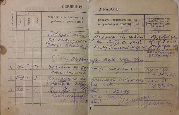Работал в ФЭИ с 1946 до 1967 года водителем в автохозяйстве.