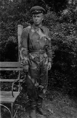 Призван в сентябре 1942 года в возрасте 17 лет. Красноармеец. Служил в 105 отдельном местном стрелковом батальоне.