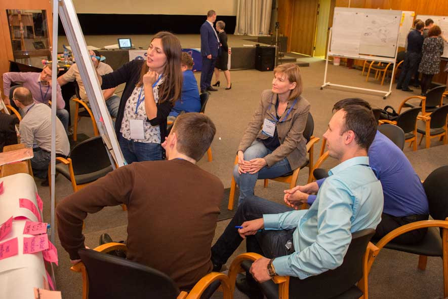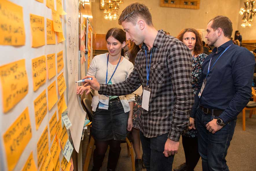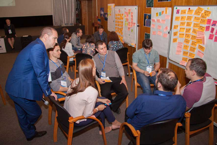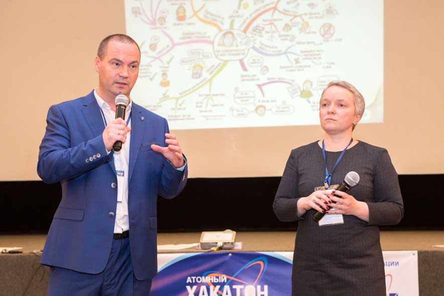 В мероприятии приняли участие более 50 молодых ученых и специалистов, а также аксакалы атомной энергетики, для которых тема хакатона тоже была интересна. Идея проведения мероприятия была предложена Блоком по управлению инновациями и с радостью поддержана в ГНЦ РФ – ФЭИ с целью предоставить возможность молодым ученым познакомиться с неизвестными им ранее этапами дизайн-мышления, креативным подходом к решению задач и попробовать себя в настоящем мозговом штурме. Для этого ведущие хакатона – представители Корпоративной академии Росатома, руководитель отдела тренеров Никита Сергеев и руководитель отдела методологии Ульяна Равидовская в течение двух дней прилагали все усилия, чтобы участники не заскучали – ставили задачи, знакомили с этапами дизайн-мышления, проводили мастер-классы и т.д.