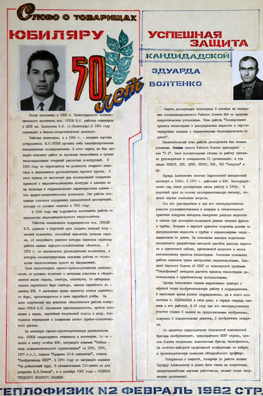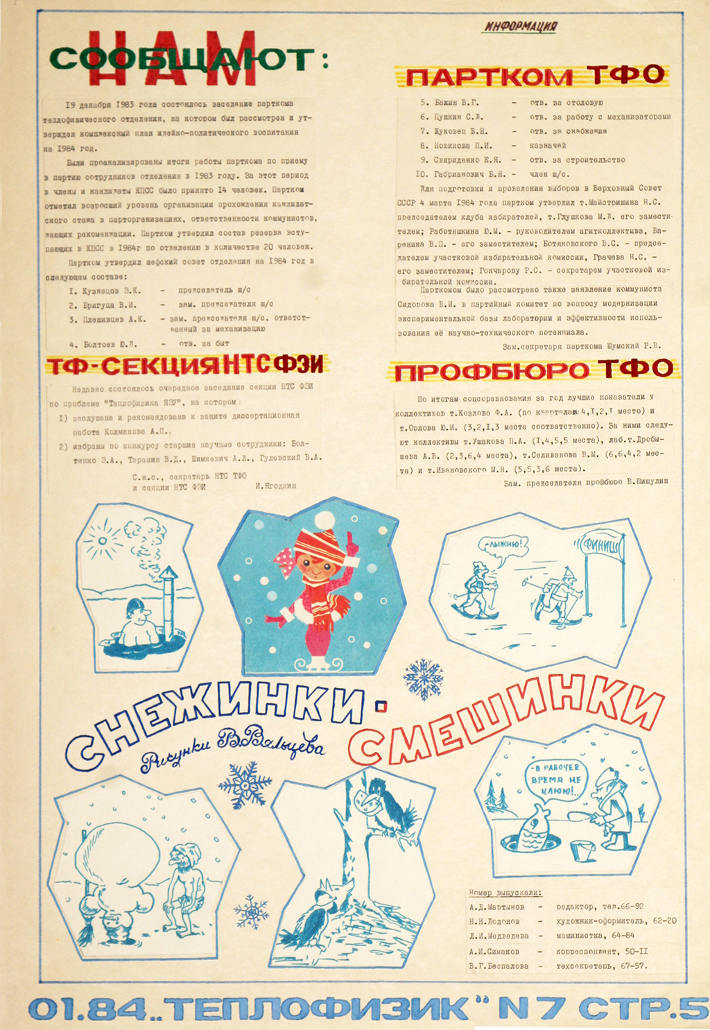 Много в газете статей о творчестве и талантах, фельетонов и юмористических заметок, свидетельствующих о способностях как теплофизиков, так и членов редколлегии.