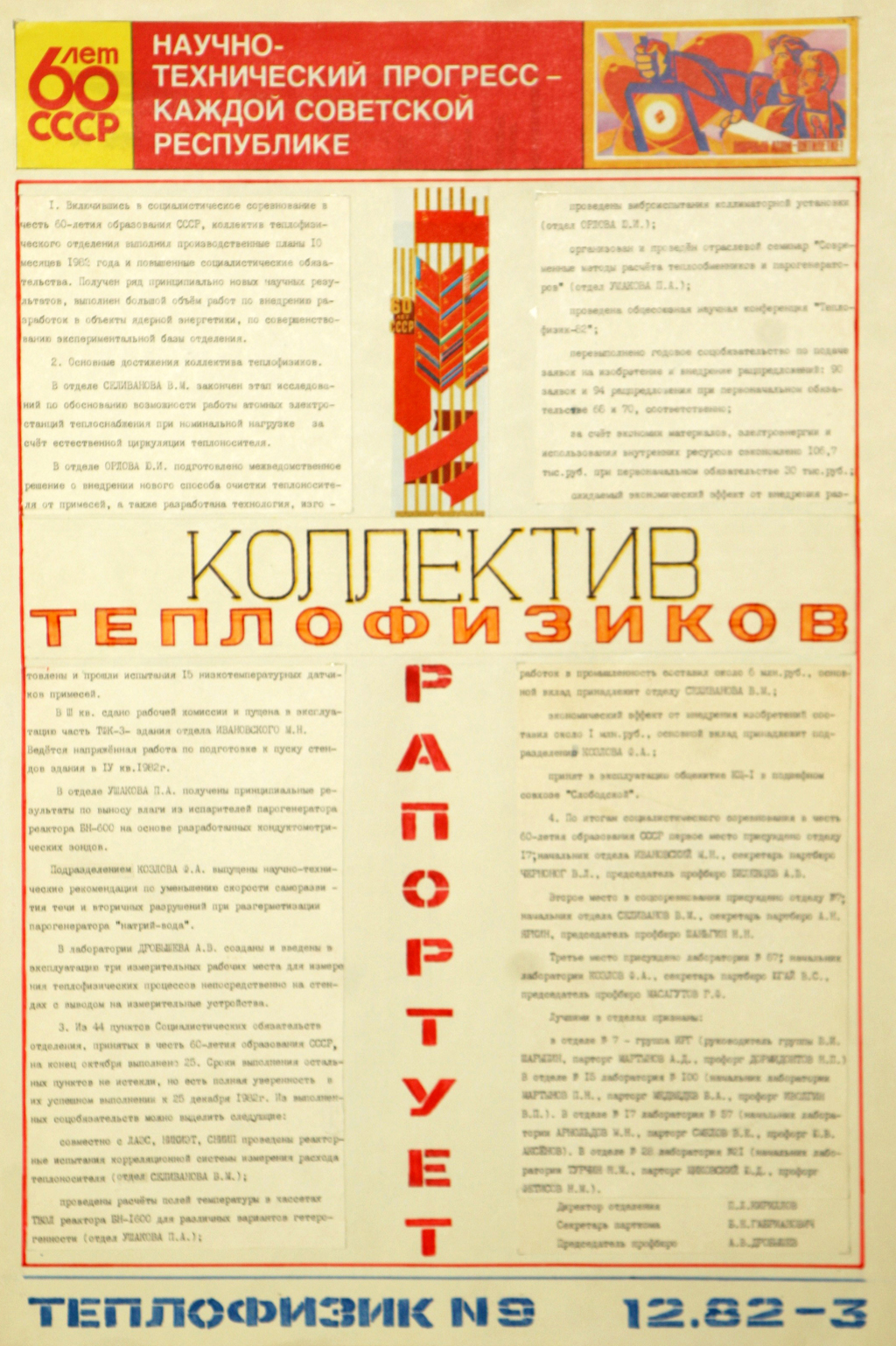 Посмотрим на примере стенгазеты «Теплофизик», как стенная печать выполняла функции внутренней коммуникации, информирования работников подразделения, воспитательную функцию и убедимся, что старые стенгазеты отражали жизнь подразделения, а сегодня демонстрируют творческий потенциал теплофизиков.