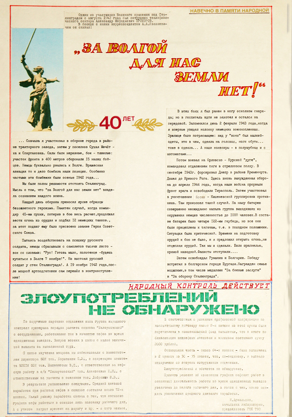 Первый лист – лицо или одежда стенгазеты. Оно могло быть серьезным, торжественно-парадным, скорбным, воинственным, а могло быть трогательно-нежным.
