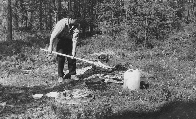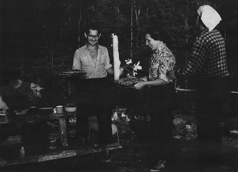 Дневка. Сегодня весь день идет подготовка к празднику. Отмечаем день рождения Г. Мучкина и В. Руденко. К ужину был приготовлен суп из двух рябчиков (Коля Колосков – автор), пирог с черникой и рыбой, именные лепешки, целая куча просто лепешек, жареная рыба, уха и кисель из черники. Начали часов в 8. Все было очень торжественно обставлено. Именинники сидели по краям стола. Ю. Александров прочитал оду в честь дня рождения юбиляров. Она была воспринята с диким восторгом, так написана действительно с юмором и рифмой. Это было здорово. Виновникам вручили по пирогу и именной лепешке, а затем памятные подарки: Мучкину – деревянную фигурку с гребцом, а Руденко – китайскую свертывающуюся картинку. Настроение у всех было приподнятым. Днем были еще проведены соревнования по стрельбе.