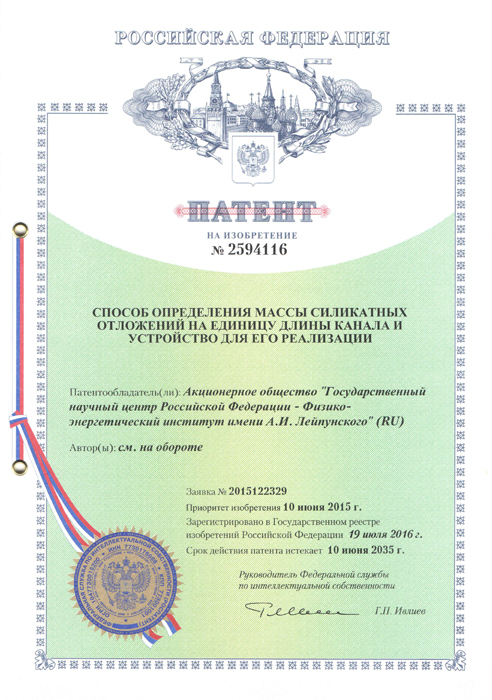 | 4 | 2594116 | 19.07.2016 | Способ определения массы силикатных отложений на единицу длины канала и устройство для его реализации |