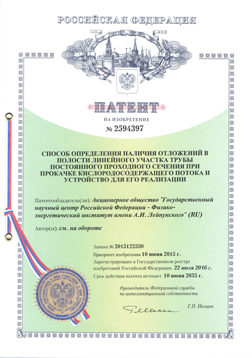 | 3 | 2594397 | 22.07.2016 | Способ определения наличия отложений в полости линейного участка трубы постоянного проходного сечения при прокачке кислородосодержащего потока и устройство для его реализации |