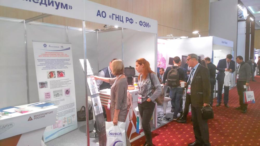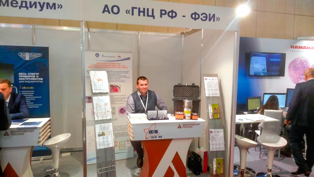В рамках выставочной экспозиции под эгидой Минпромтога России Физико-энергетический институт представил генератор рения W-188/Re-188 и генератор технеция 99Мо/99mTc, применяемые для терапии онкологических заболеваний, офтальмоаппликаторы для контактной лучевой терапии злокачественных новобразований органов зрения, микроисточники с I-125 для брахитерапии.