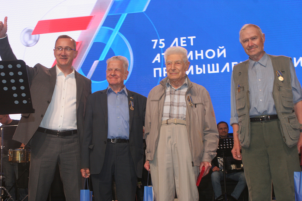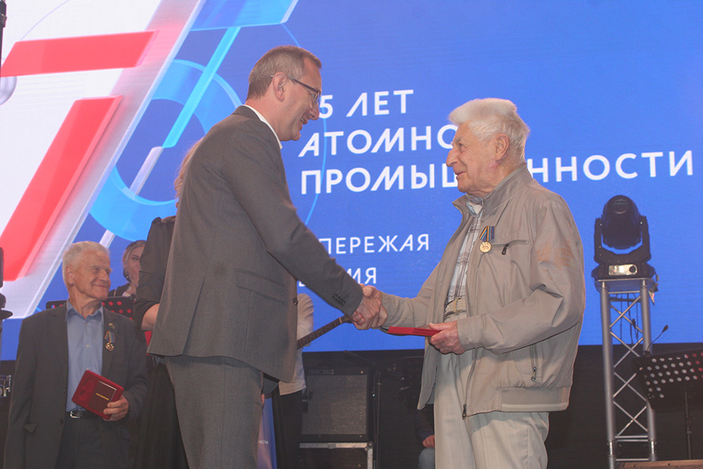 Днем позже, 4 сентября, на городской детской площадке на пр. Маркса рядом с МТРК «Триумф Плаза» временно исполняющий обязанности губернатора Калужской области Владислав Шапша поздравил жителей Обнинска, ветеранов и сотрудников предприятий Госкорпорации «Росатом» с юбилеем атомной промышленности. Владислав Валерьевич вручил ветеранам ГНЦ РФ — ФЭИ Мартиросяну Гранту Арамовичу, Сазонову Валерию Кондратьевичу и Спиченкову Сергею Владимировичу юбилейные медали «75 лет атомной отрасли России», выпущенные специально к юбилею отрасли.