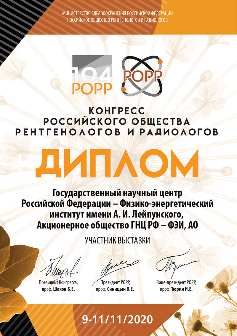 В рамках выставочной экспозиции под эгидой Минпромторга России Физико-энергетический институт представил информационные проспекты о генераторе рения W-188/Re-188, применяемого для терапии онкологических заболеваний, офтальмоаппликаторах для контактной лучевой терапии злокачественных новобразований органов зрения и микроисточниках с I-125 для брахитерапии, а также представил разработки радиофармацевтического лекарственного препарата для лечения онкологических заболеваний печени. ГНЦ РФ – ФЭИ производит и поставляет на рынок около 30 наименований различной радиоизотопной продукции. Это и изделия медицинской техники, и источники ионизирующих излучений, и просто радиоактивные изотопы в виде сырья.