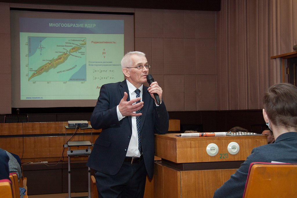 Региональное научно-популярное мероприятие для школьников началось с лекции по физике «Тайны атомного огня», которую прочитал главный научный сотрудник ГНЦ РФ – ФЭИ, доктор физико-математических наук, лауреат премии Правительства Российской Федерации в области науки и техники Андрей Говердовский. После лекции он ответил на многочисленные и интересные вопросы учеников, а самые активные слушатели получили памятные сувениры из личной коллекции ученого.