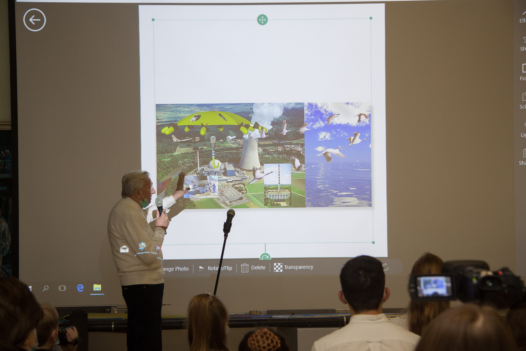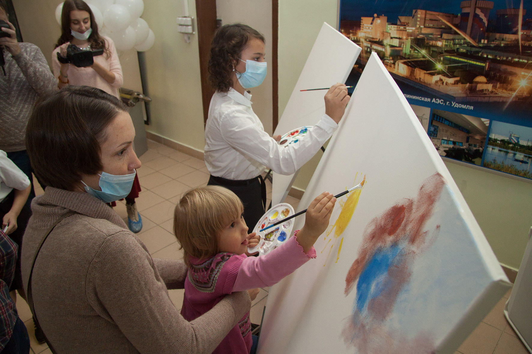 Традицией мероприятий, проводимых на базе Музейного комплекса ГНЦ РФ - ФЭИ, стало коллективное рисование. Все желающие смогли внести свой вклад в создание уникального полотна-диптиха «Журавлиная память». Творческий процесс происходил в сопровождении видеоряда о великих ученых России и героях Советского атомного проекта, а также знаменитой песни «Журавли» Расула Гамзатова.