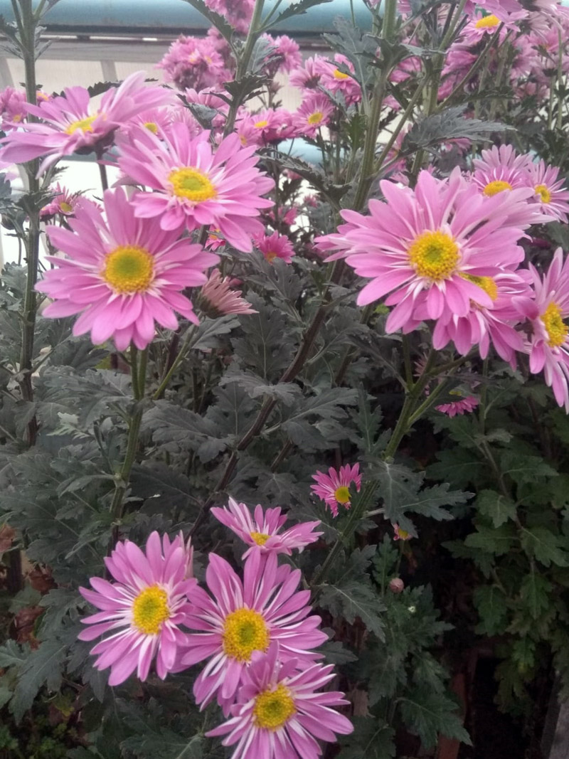 Много лет назад специалисты участка озеленения привезли из Калуги 30 сортов хризантем, около половины из них удалось сохранить. Сроки цветения у всех разные, но в этом году из-за теплой погоды цветение особо яркое и долгое. Институт пригласил гостей увидеть эту красоту и оценить труд работников оранжереи, ведь самая первая и самая разнообразная зеленая коллекция в городе – именно здесь.
