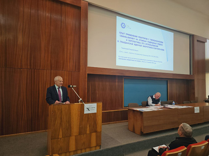 В ходе двухдневной конференции от АО «ГНЦ РФ – ФЭИ» выступили советник генерального директора Георгий Тошинский и главный инженер лаборатории Павел Долженко. Георгий Ильич рассказал об истории свинцово-висмутовых реакторов для АПЛ, а Павел Олегович представил доклад «Александр Ильич Лейпунский. К 120-летию со дня рождения».