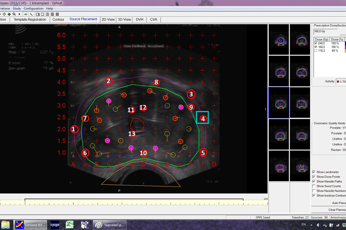 Брахитерапия – вид лучевой терапии, при которой источники ионизирующего излучения перманентно имплантируют в пораженную опухолью ткань. Излучение микроисточников обуславливает максимальную дозу излучения непосредственно в опухоли без поражения прилегающих органов и тканей.