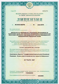 Лицензия №ФС-99-04-002794 от 15 июня 2015 г. на осуществление деятельности по производству и техническому обслуживанию медицинской техники