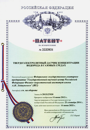 | 6 | 2533931 | 27.11.2014 | Твердоэлектролитный датчик концентрации водорода в газовых средах | Асхадуллин Р.Ш., Стороженко А.Н., Ульянов В.В., Шелеметьев В.М., Садовничий Р.П. |