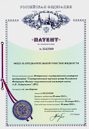 | 10 | 2542269 | 20.02.2015 | Модуль предварительной очистки | Мартынов П.Н., Паповянц А.К., Ягодкин И.В., Мельников В.П., Гришин А.Г., Дельнов В.Н. |