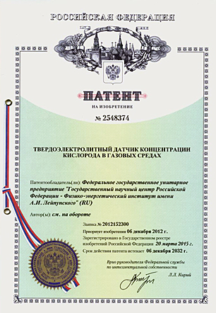 | 11 | 2548374 | 20.04.2015 | Твердоэлектролитный датчик концентрации кислорода в газовых средах | Мартынов П.Н., Асхадуллин Р.Ш., Стороженко А.Н., Чернов М.Е., Ульянов В.В., Шелеметьев В.М., Садовничий Р.П. |