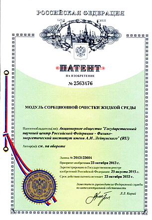 | 12 | 2563476 | 20.09.2015 | Модуль сорбционной очистки жидкой среды | Мартынов П.Н., Ягодкин И.В., Богданович Н.Г., Скоморохова С.Н., Мельников В.П., Дельнов В.Н. |
