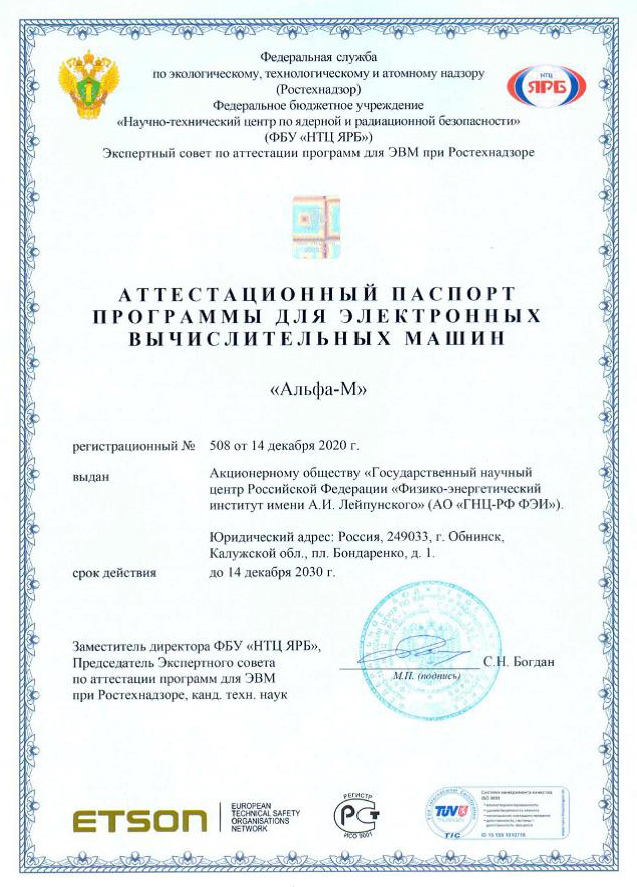 - программа АЛЬФА-М для вычисления активности продуктов коррозии и продуктов деления в первом контуре быстрого реактора с натриевым теплоносителем;