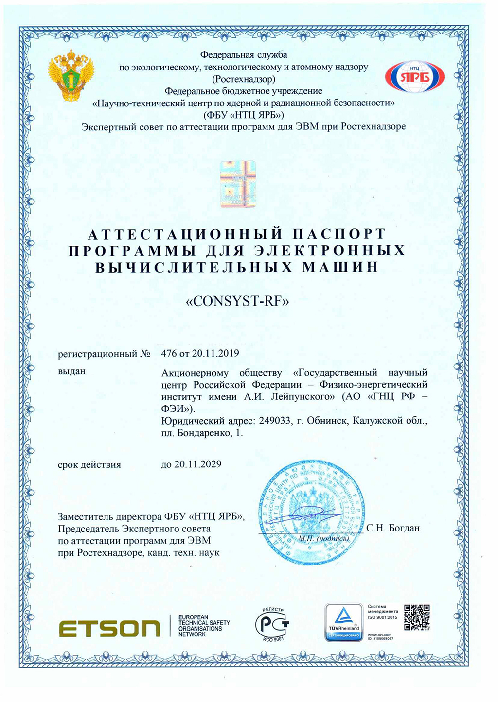 - программный комплекс CONSYST для обеспечения ядерно-физическими константами различных нейтронно-физических кодов;