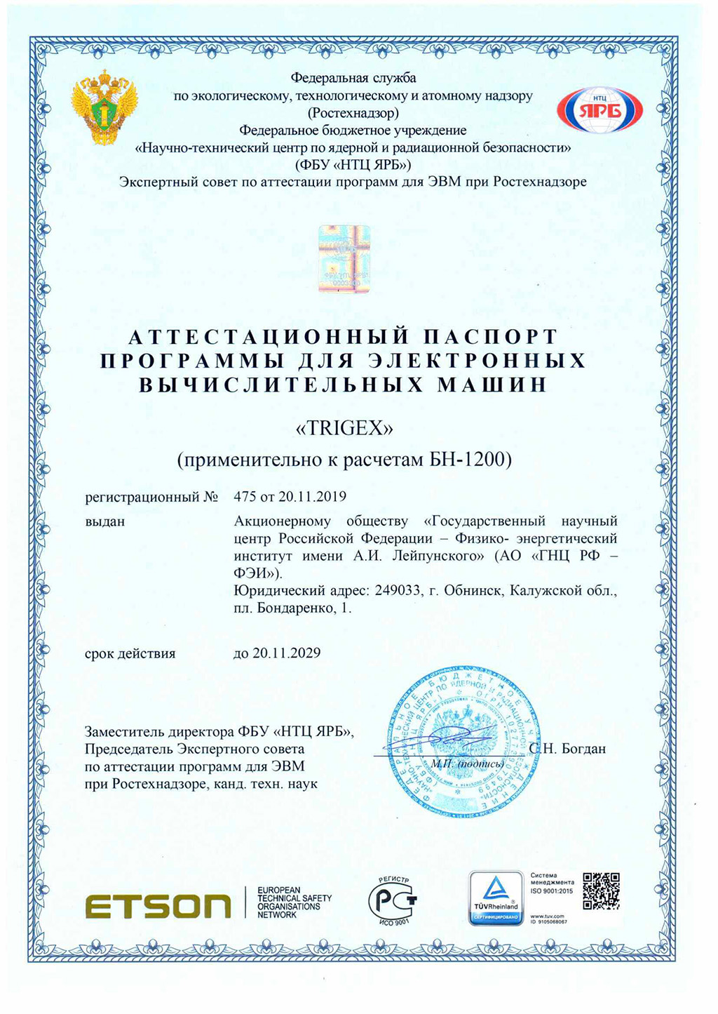 - программа ТRIGEX для проведения нейтронно-физических расчетов быстрых реакторов и критических сборок;